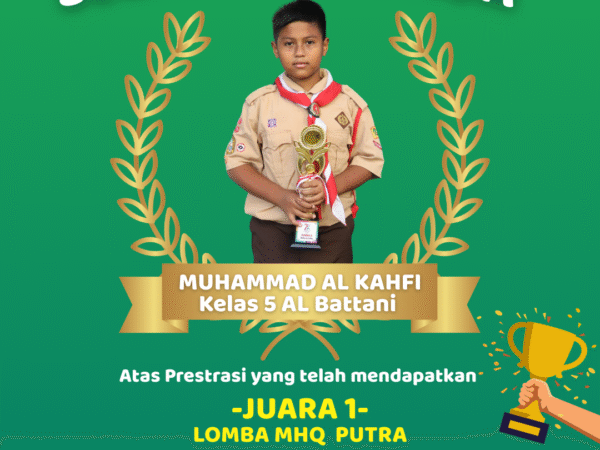 Penghargaan PrestasiDengan penuh rasa syukur, kami mengucapkan selamat kepada Muhammad Al Kahfi, siswa kelas 6 Ibnu Batuta, yang berhasil meraih Juara 1 Musabaqah Hifdzil Qur’an (MHQ) Putra pada ajang Pentas PAI..